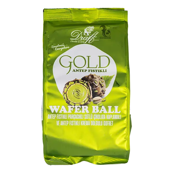 Вафельні кульки з молочного шоколаду та шматочками фісташки, 150г